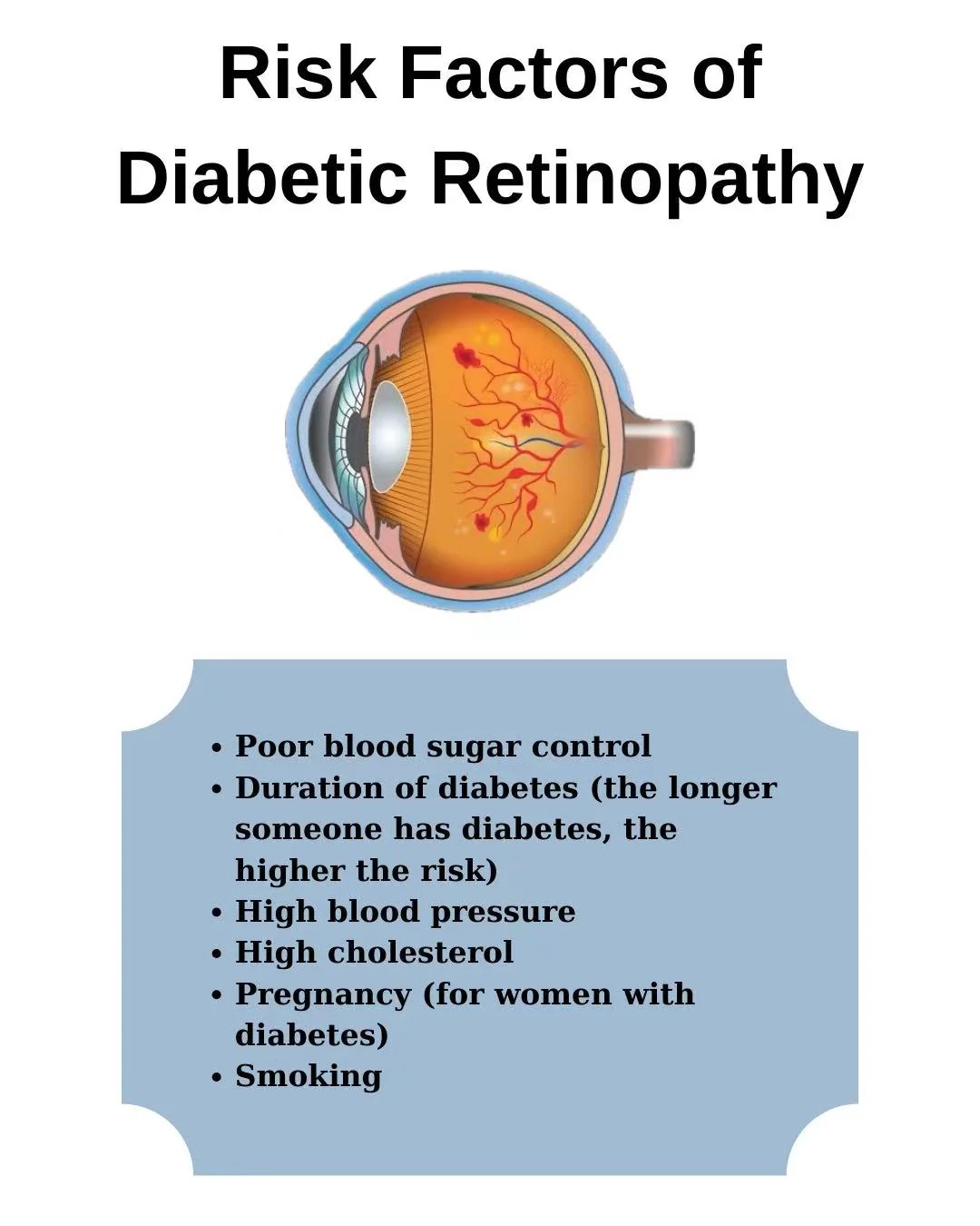 Anyone with diabetes—Type 1, Type 2, or gestational—can develop diabetic retinopathy. The risk increases with: